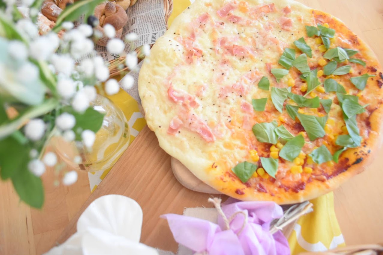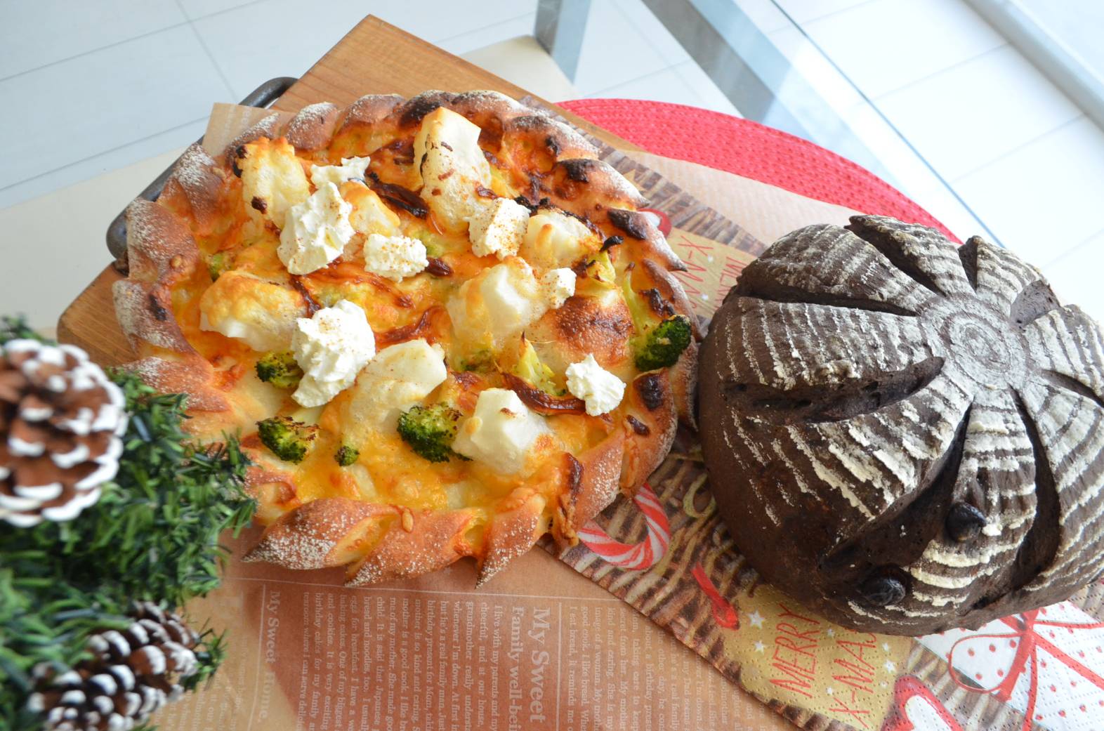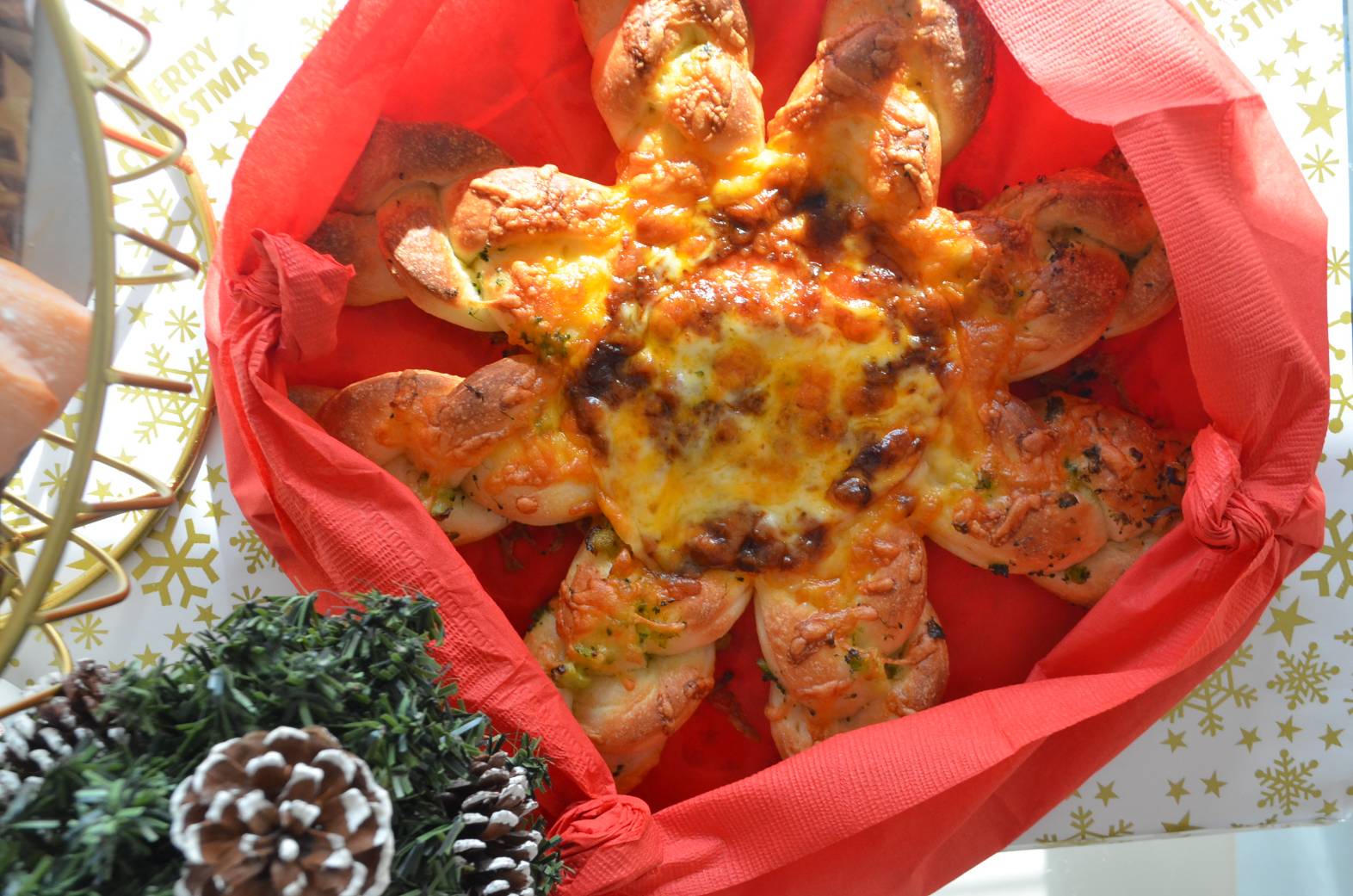 冬らしい見た目が楽しいピザ。食卓を彩る華やかなメニューに仕上げました。