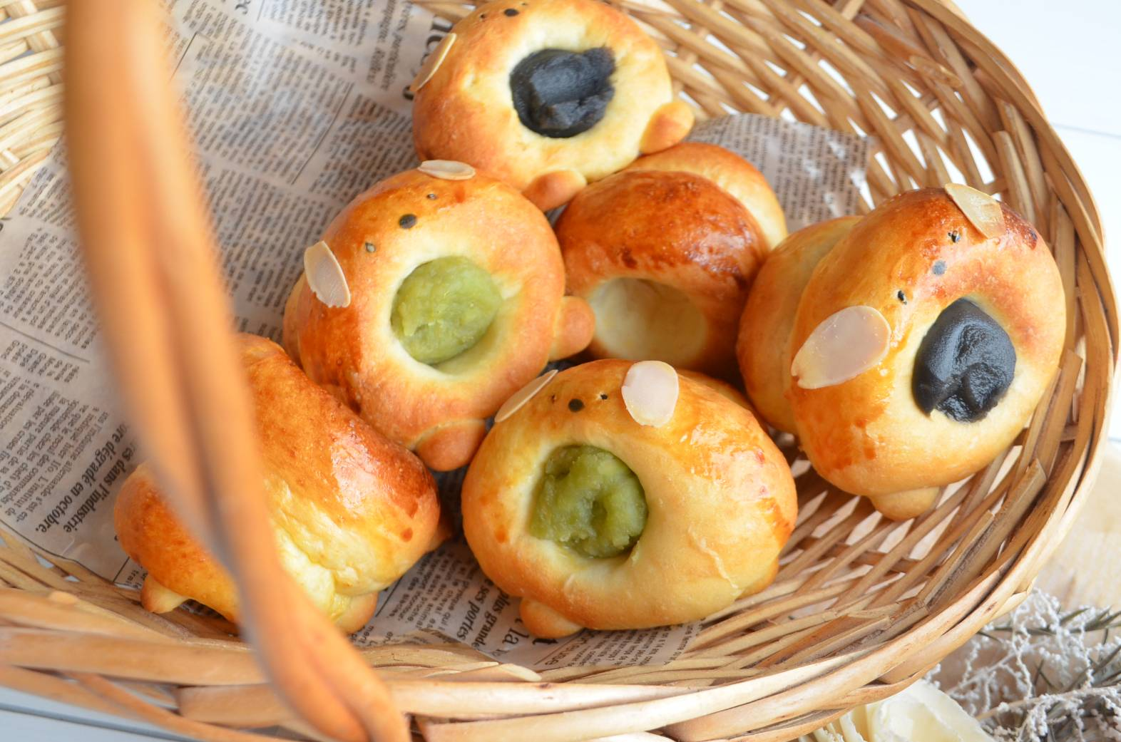 ころんと丸めるだけで完成する、わんちゃんみたいなコロネパン。ちょこんとしたフォルムと、ちょっぴり大きな頭がなんとも愛らしくて、見ているだけでほっこり癒されます。定番のチョコクリーム以外に、秋のスイートポテトや枝まめ餡などを入れ、カラフルに仕上げます。