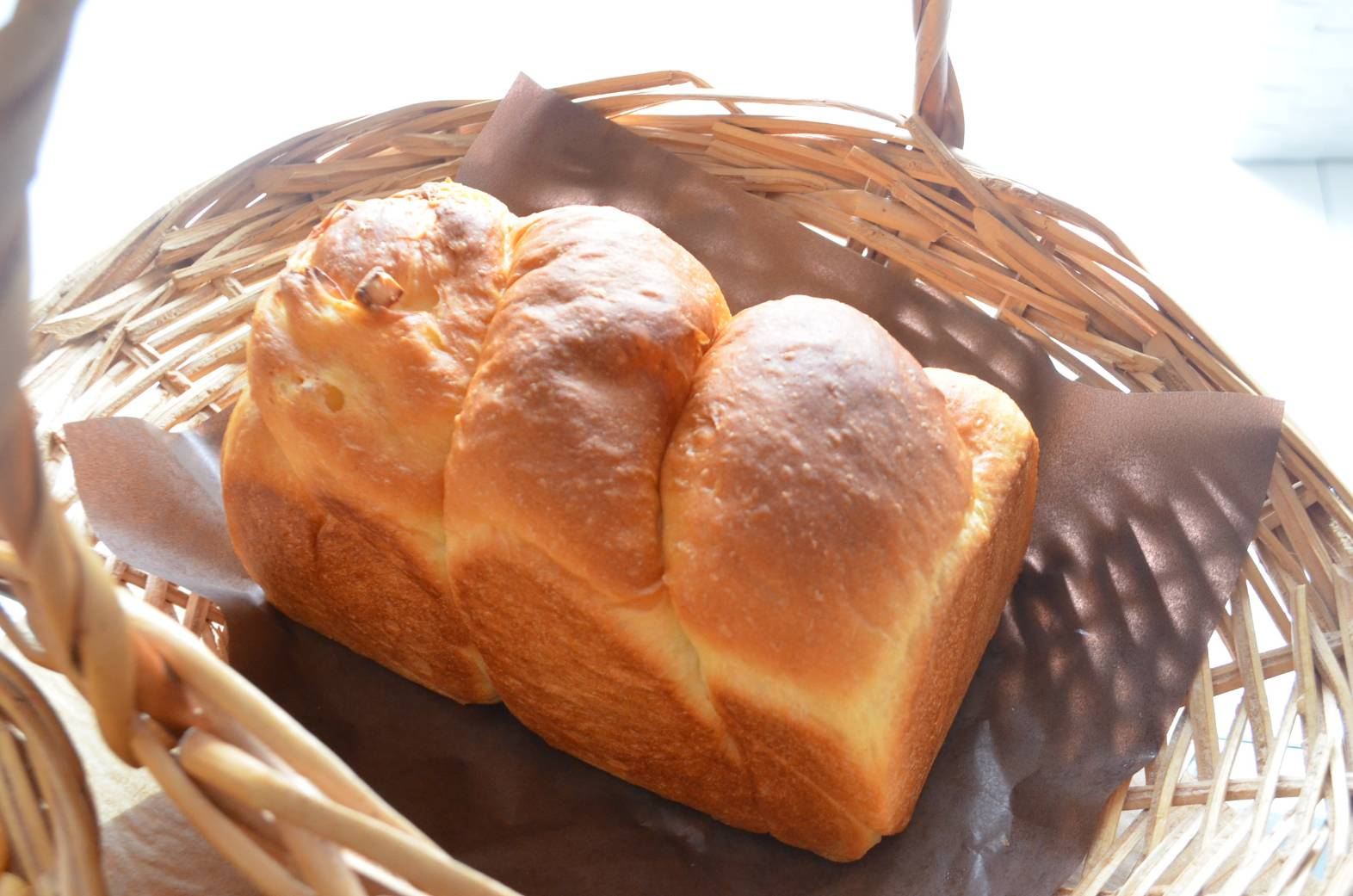 はちみつをたっぷり練り込んだ食パンは、一度に2種類作ります。クロスして型に入れる変わった成形で、毎日食べたくなる、しっとりとした食感です。