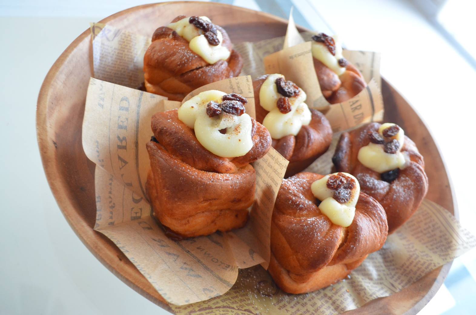 5月のメニューは、人気のベーグルレッスンがシナモンロールの香りをまとって新登場!豆乳バターでしっとりと仕上げ、アイシングとクランチでちょっぴり贅沢におめかししました。