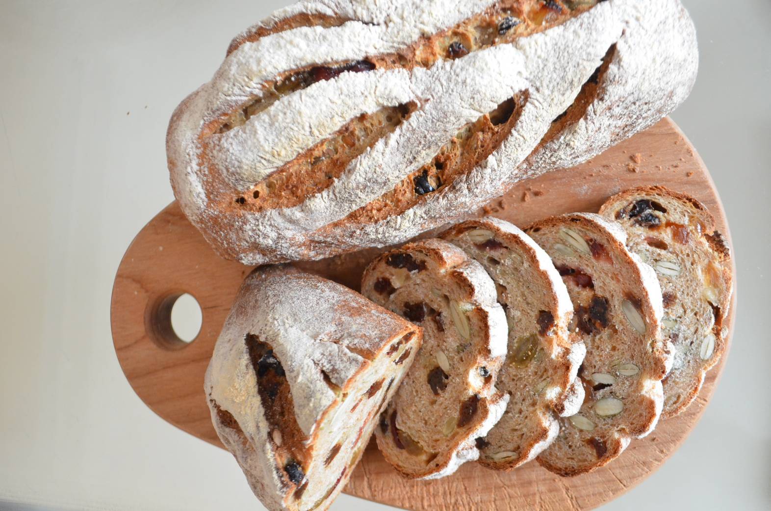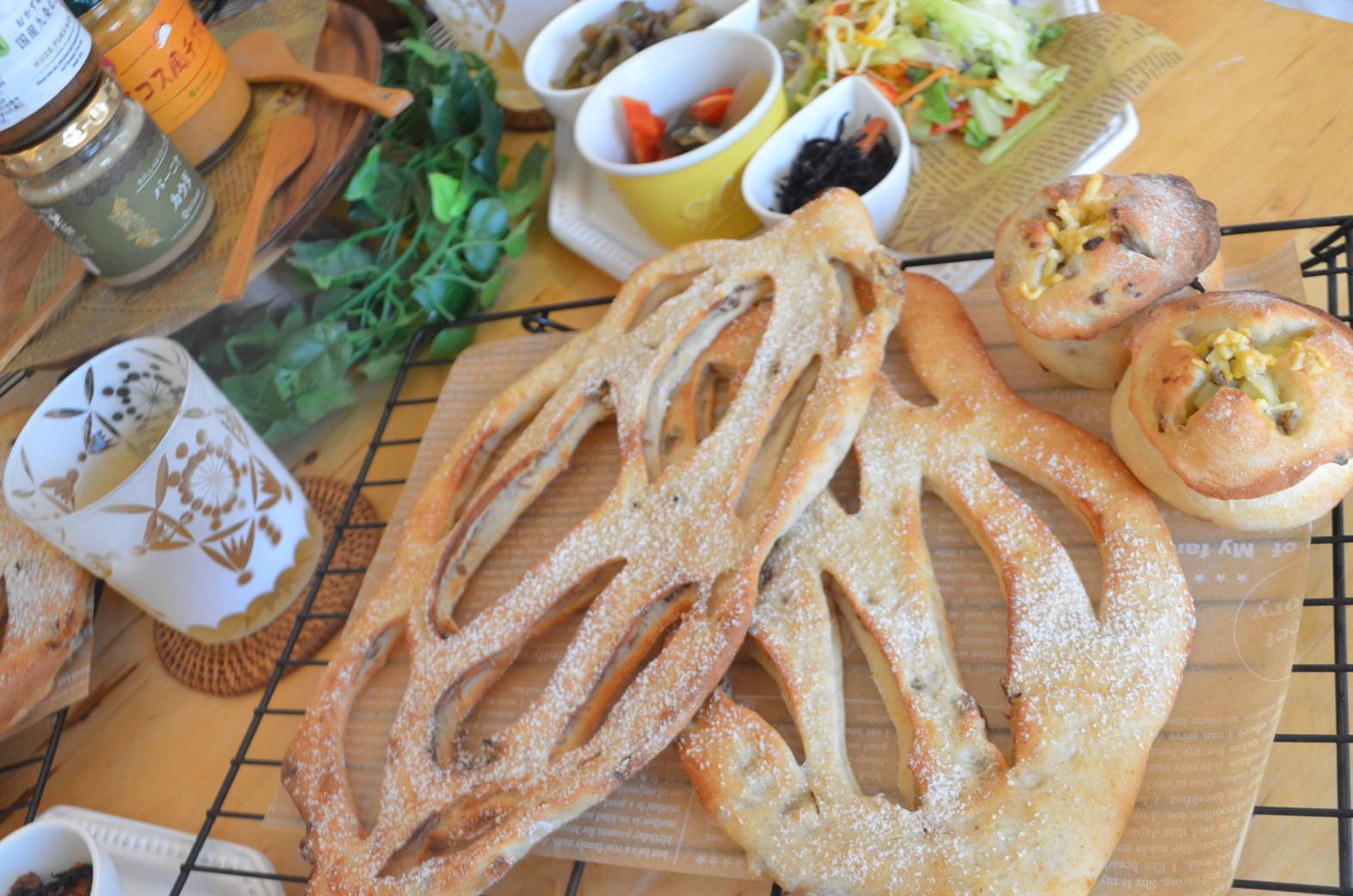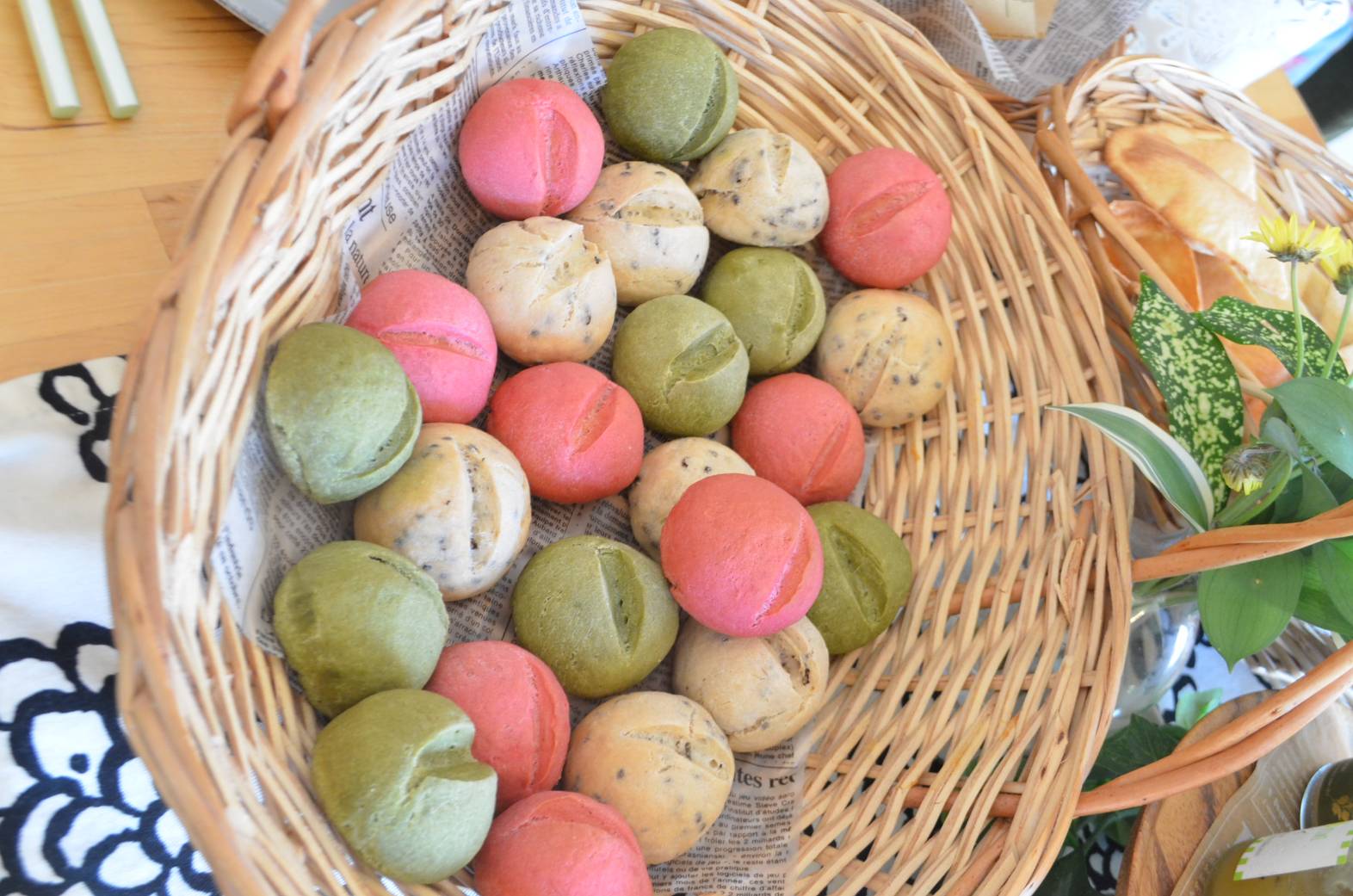 秋らしいレーズン入りのシナモンロールと、ビーツ・ほうれん草・黒ごまを使った小さなお子さまにもおすすめな3種の米粉パンをつくります。