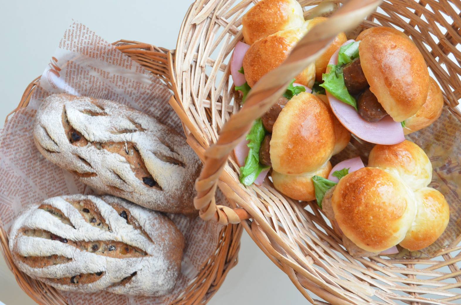 「秋のフルーツライ」は、ライ麦とヨーグルトを使った味わい深いセミハードなライブロートです。 「くまくまミートボール」は、絵本に出てきそうなかわいいくま型パン。秋のお出掛けにミートボールを入れてハンバーガーにするのもおすすめです。