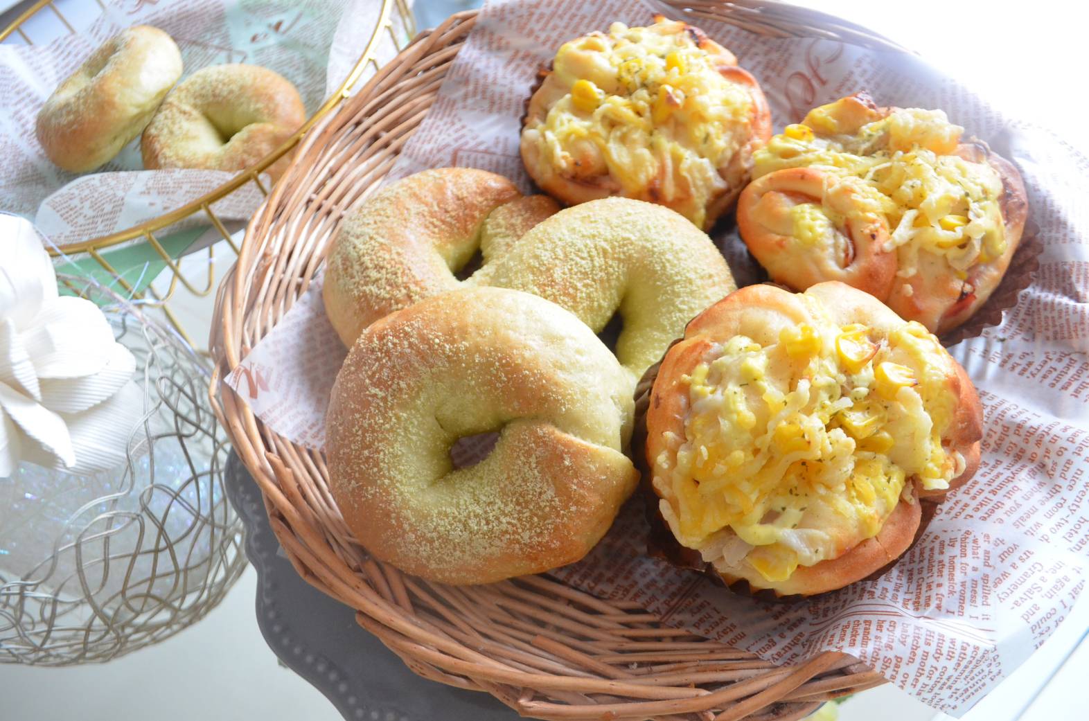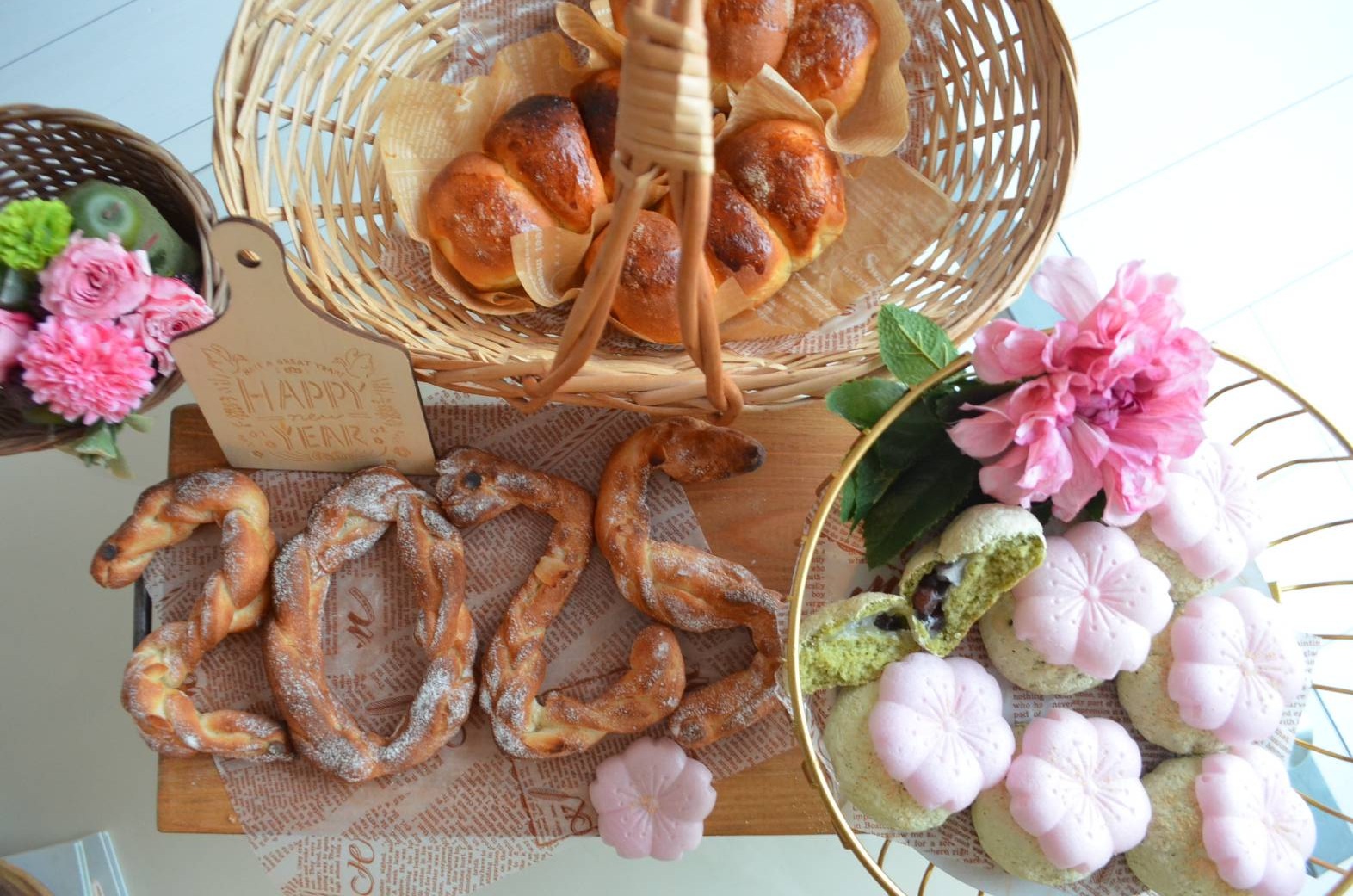 2024年、明けましておめでとうございます。 お正月らしい求肥餅ときな粉を使ったベーグルと、オニオンブレッドをコーン入りにアレンジ。お子さまも食べやすく楽しいパンメニューです。