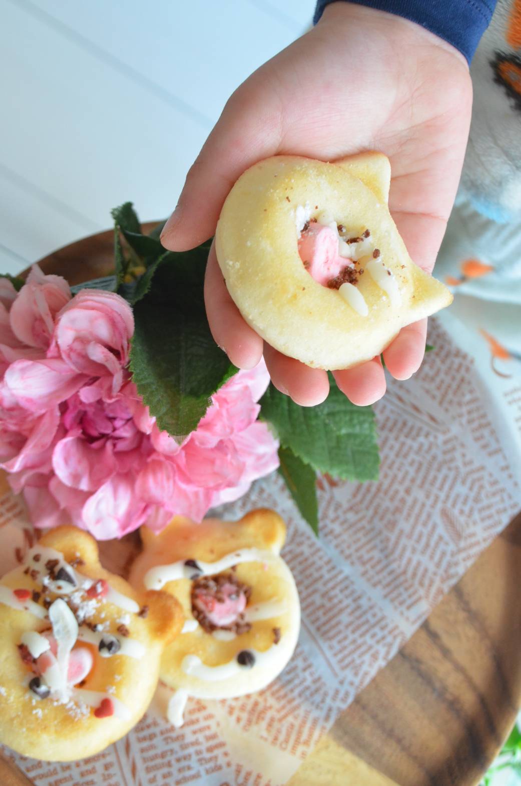 ドーナツは、米粉を使用し、動物性食材を一切使わない優しい味わい。可愛らしいくまやねこの形でお子様にも人気です。